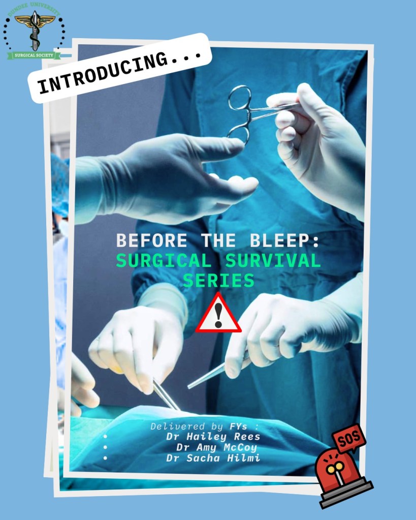 Before the Bleep: Surgical Survival Series β a brand-new teaching series designed for medical students and delivered by Foundation Year (FY) doctors: Dr Hailey Rees, Dr Amy McCoy, and Dr Sacha Hilmi.